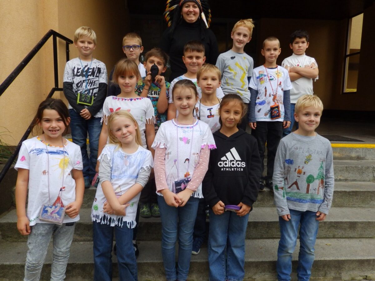 Na přelomu září a října se děti ze školní družiny promění v Indiány. Čekala nás tvorba čelenek i s pery a také výzdoba našich indiánských triček, nováčci si přinesli trička k namalování, ti starší v rámci upcyklace vylepšovali ta stávající. Děti hezky spolupracovaly, starší pomáhali prvňáčkům a společně se také učili tematicky laděné písničky, které pak zazpívali při návštěvě místní cukrárny.