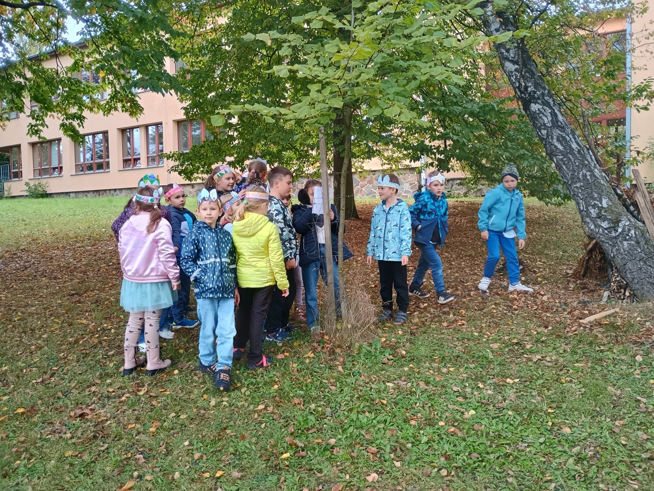 Nechyběla také cesta za indiánským pokladem. Skupinky děti musely odpovědět na otázky, kdy je správná odpověď zavedla na další stanoviště a nakonec k bedně s pokladem. Ha, v bedně byl jen vzkaz, že podklad bílé tváře ukryly přímo v třídách naší družiny. Žádné rozladění se nekonalo, protože nás mile překvapil venku servírovaný čaj s indiánským kořením, který všem luštitelům přišel v pošmourný vhod.