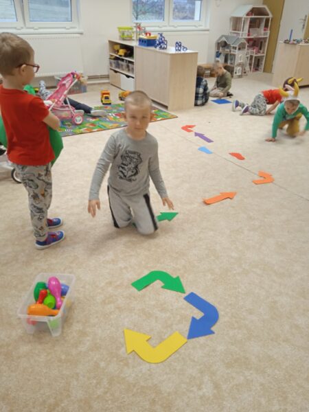 Zahrály si na roboty – pomocí šipek se navzájem „programovaly“. Zkoušely přepisovat písmena, číslice a znaky z klávesnice a zkoumaly, jak vypadá notebook uvnitř. Děti rovněž zkoušely fotografovat věci, které je zaujaly. Z pořízených fotografií jsme si pak udělali výstavku.