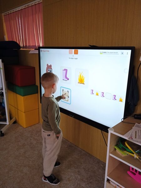 A když už jsme si povídali o moderních technologiích, nesměla chybět práce s interaktivní tabulí, která děti vždy velmi baví.