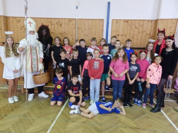 V pátek 5. 12. 2025 proběhla v naší škole „Mikulášská besídka“ pro žáky I. stupně. Paní učitelky připravily pro žáky různé hry, soutěže, společně si zazpívali písničky a zpestřili si tak průběh dnešního mikulášského vyučování. Navštívil nás čert s Mikulášem a anděly, kteří dětem rozdávali různé drobnosti. Přikládám i několik fotografií z této pěkné akce a na závěr děkuji všem, kteří se na akci podíleli: paní vychovatelka Martina Tomašíková, paní učitelka Mgr. Lenka Vojáčková a další paní učitelky I. stupně, a v neposlední řadě naši šikovní žáci Dominika Ella Pagáčová, Vanda Novotná, Natálie Kulhánková, Eliška Brychtová, Tadeáš Makovský, Tomáš Sigmund a Jan Kříž.