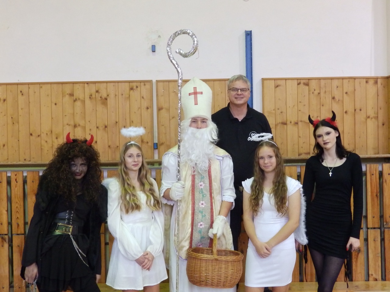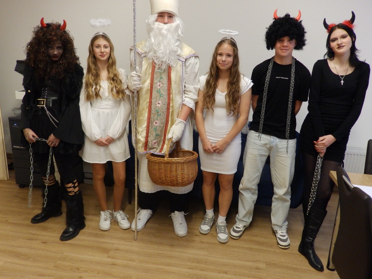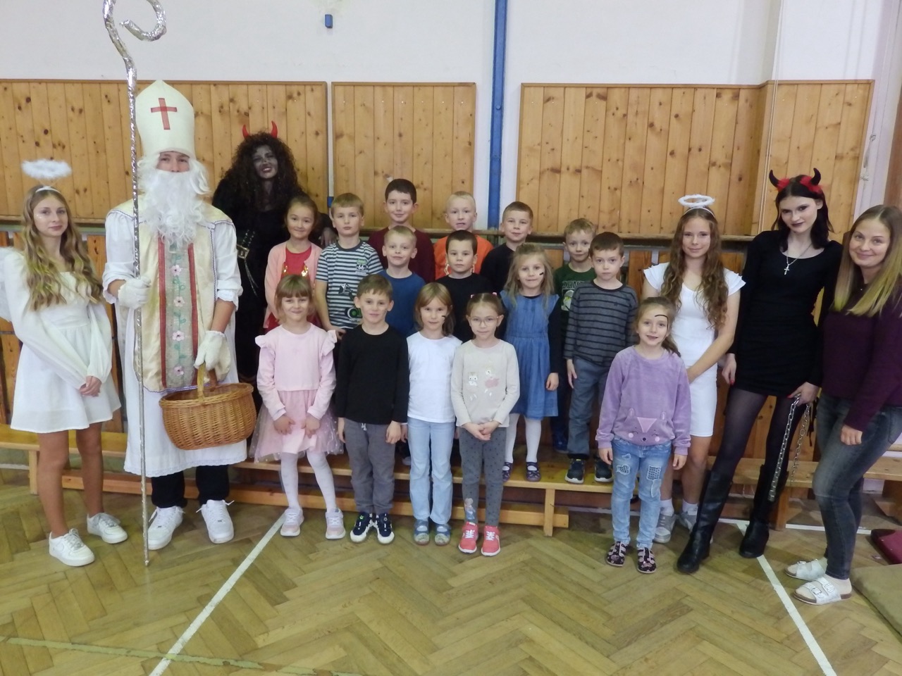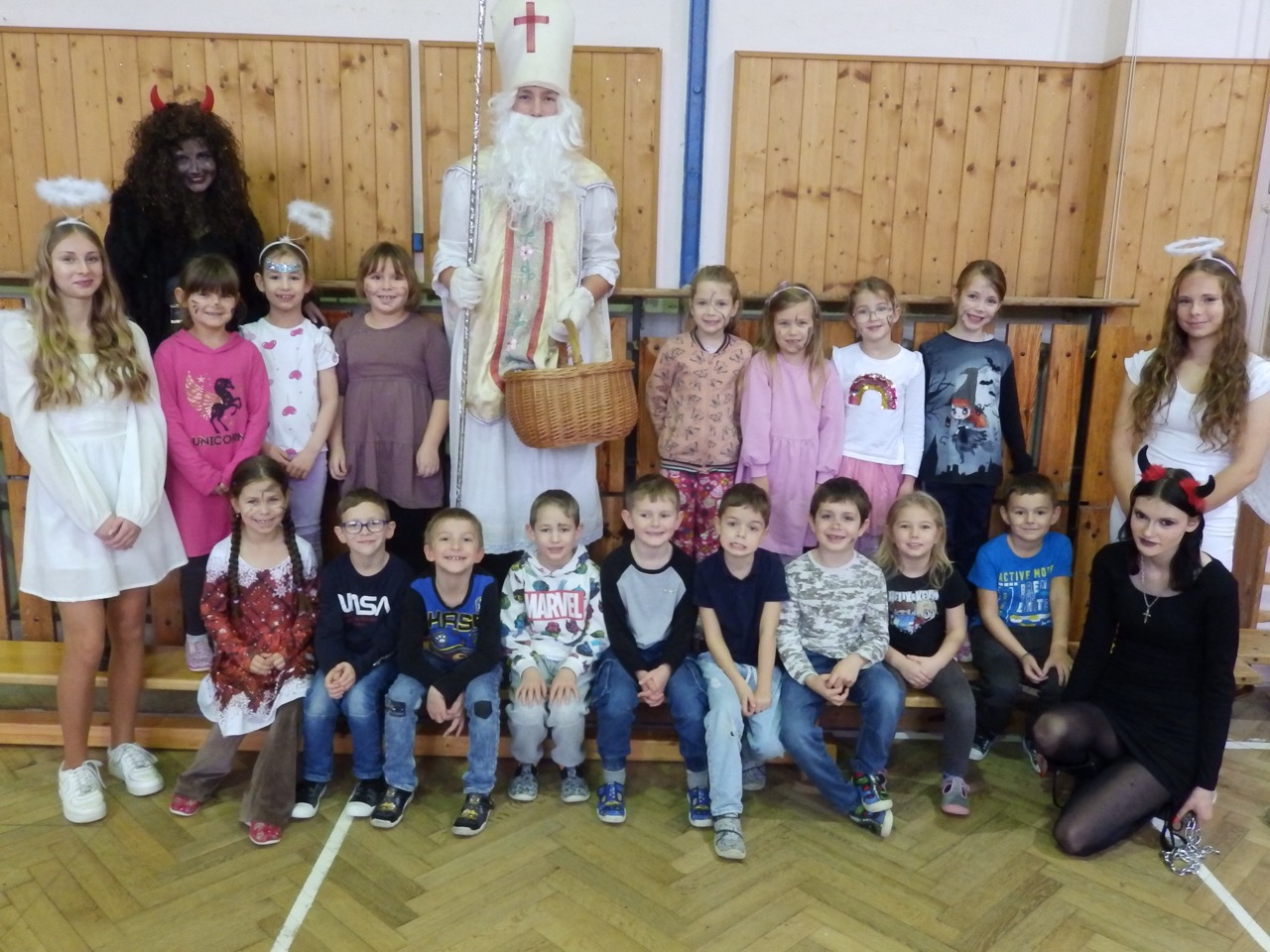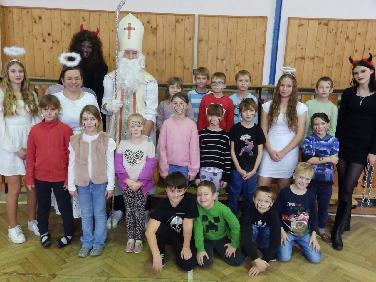 V pátek 5. 12. 2025 proběhla v naší škole „Mikulášská besídka“ pro žáky I. stupně. Paní učitelky připravily pro žáky různé hry, soutěže, společně si zazpívali písničky a zpestřili si tak průběh dnešního mikulášského vyučování. Navštívil nás čert s Mikulášem a anděly, kteří dětem rozdávali různé drobnosti. Přikládám i několik fotografií z této pěkné akce a na závěr děkuji všem, kteří se na akci podíleli: paní vychovatelka Martina Tomašíková, paní učitelka Mgr. Lenka Vojáčková a další paní učitelky I. stupně, a v neposlední řadě naši šikovní žáci Dominika Ella Pagáčová, Vanda Novotná, Natálie Kulhánková, Eliška Brychtová, Tadeáš Makovský, Tomáš Sigmund a Jan Kříž.