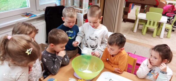 podkladů od maminek. Jiný tým vybral potřebné suroviny a dohlížel na jejich správné odvážení a