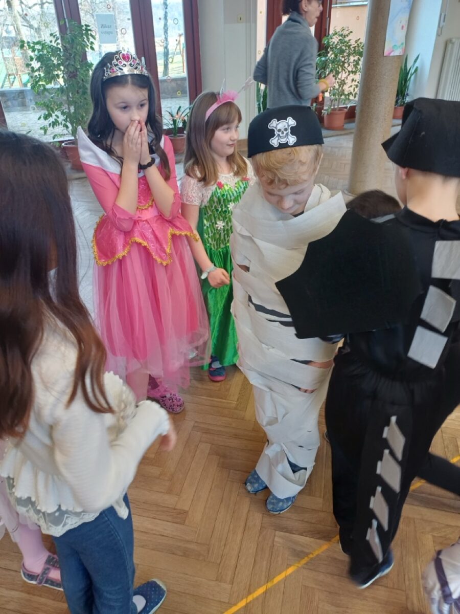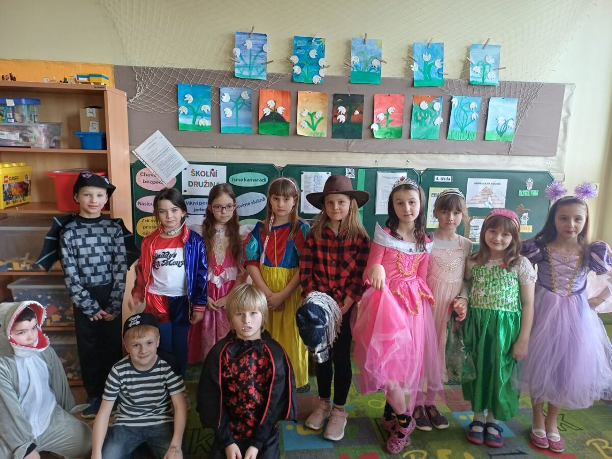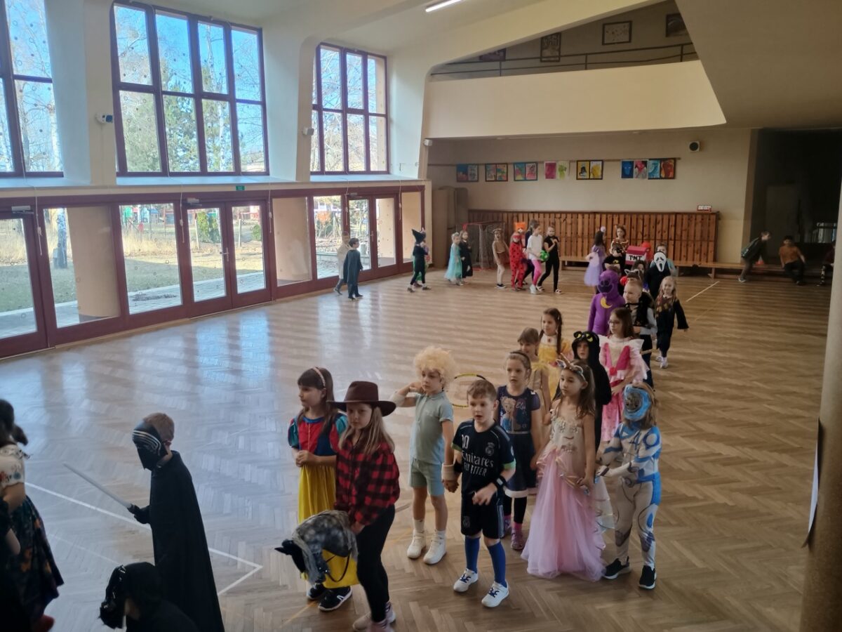 Únor patří tradičně masopustním zvykům, bálům a ani my v družině jsme si pořádný karnevalový rej nenechali ujít. Poslední únorový čtvrtek proto patřilo celé odpoledne maskám, tanečkům a zábavě. Děti se na převlékání těšily a brzy byl sál školy plný princezen, pirátů, superhrdinů, objevil se i hrabě Drákula a připlul za námi dokonce žralok a na okraji sálu si jedna kovbojka zaparkovala i koně.