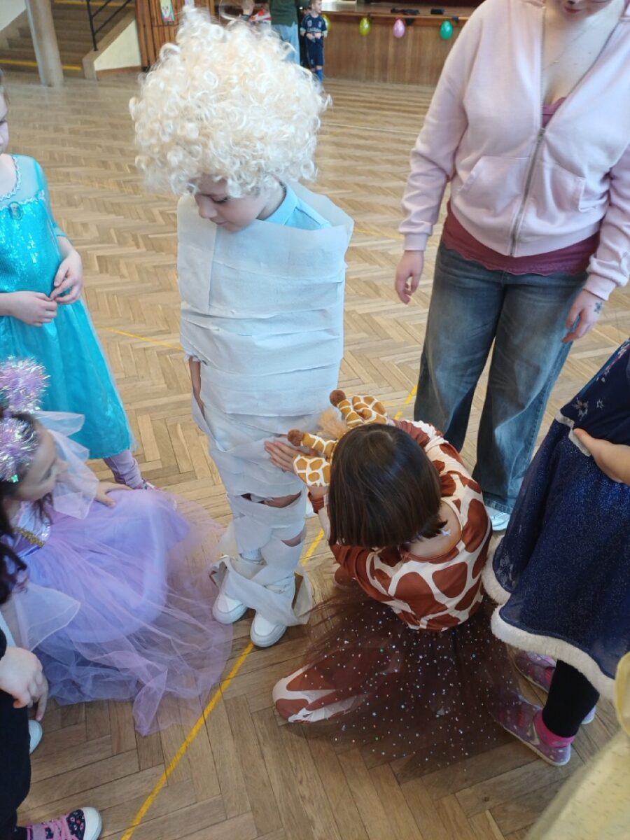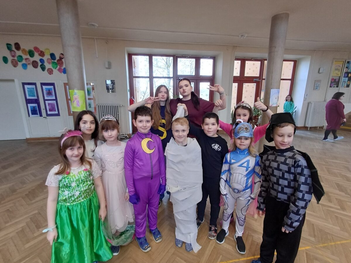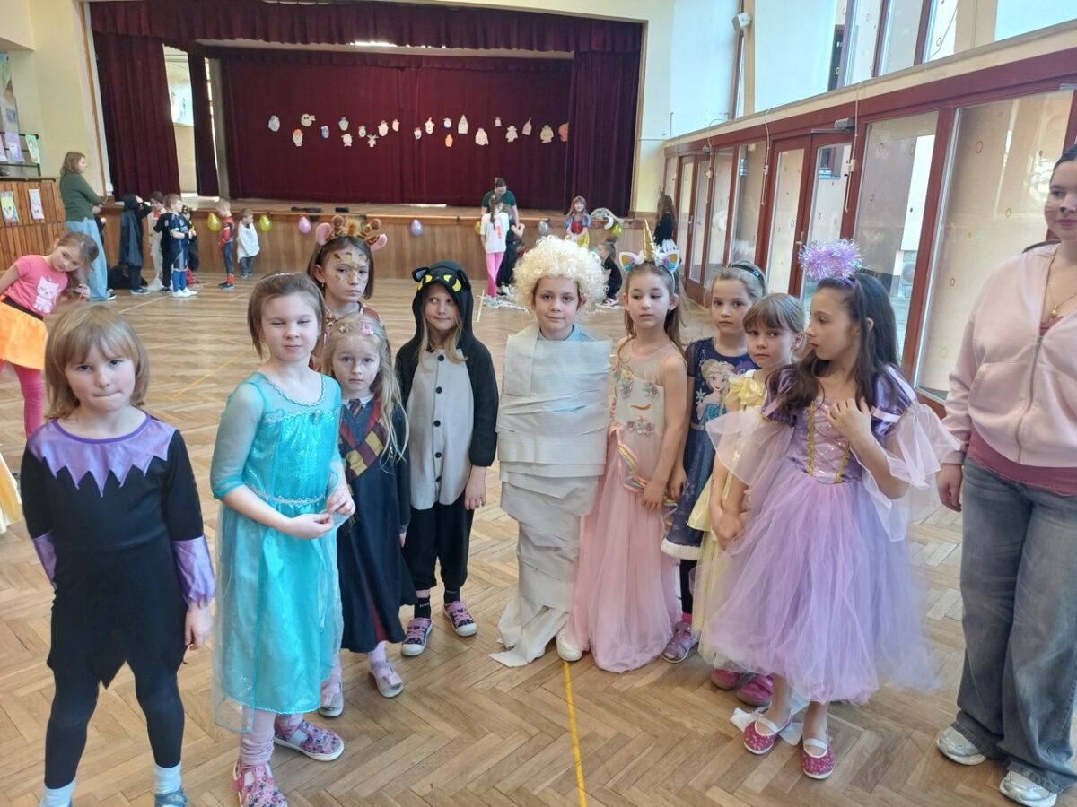 Únor patří tradičně masopustním zvykům, bálům a ani my v družině jsme si pořádný karnevalový rej nenechali ujít. Poslední únorový čtvrtek proto patřilo celé odpoledne maskám, tanečkům a zábavě. Děti se na převlékání těšily a brzy byl sál školy plný princezen, pirátů, superhrdinů, objevil se i hrabě Drákula a připlul za námi dokonce žralok a na okraji sálu si jedna kovbojka zaparkovala i koně.