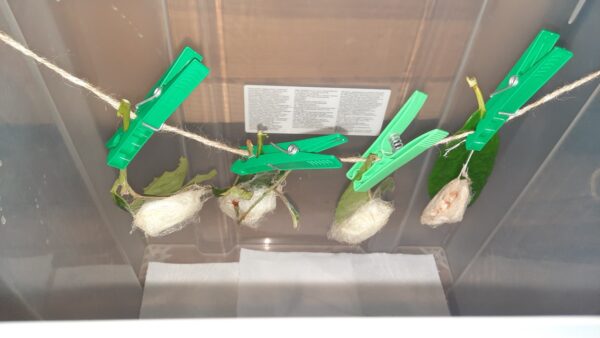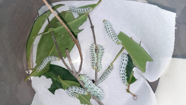 Venku jsme přivítali jaro, ale my si kousek jara dopřáli už v zimě. Hned v listopadu jsme dostali vajíčka našeho velkého motýla Martináče pajasanového a pokusili jsme se ho odchovat. Nejdříve jsme každý den pozorovali, zda se z vajíček líhnou housenky. Podařilo se a čím byly větší, tím také žravější. Děti ochotně nosily zásobu ptačího bobu a housenky papaly a papaly až se jednoho dne objevila první kukla (kokon). Celkem se zakuklilo všech dvanáct housenek, kterým jsme dopřáli klid a hlavně teplo. Asi po měsíci se vyklubal na svět první motýl a ostatní ho následovali. Pozvali jsme ostatní třídy na prohlídku a celkem jsme se pochlubili devíti motýli. Bohužel vylíhlí motýli mají zakrnělé ústní ústrojí a nepřijímají již žádnou potravu. Udělali nám svou krásou radost a nakonec jsme je vrátili přírodě.