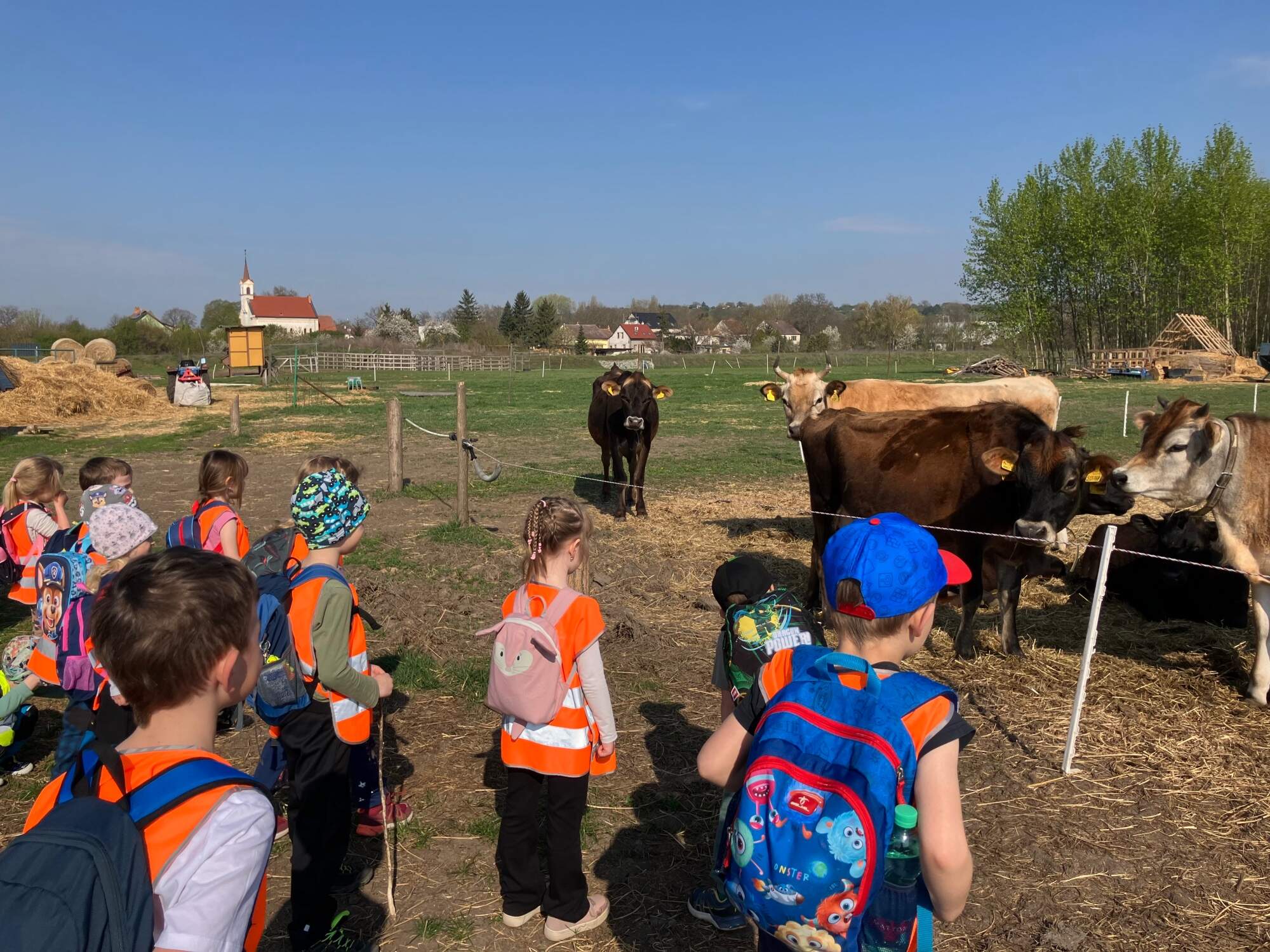 V Újezdě u Brna se mezi poli rozkládá farma. Polní cesta nás zavedla nejprve ke kravičkám. Kdo má v dnešní době možnost prohlédnout si takové zvíře pěkně zblízka? A co teprve, když kráva zabučela!